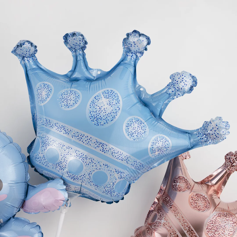 Шар с клапаном (16''/41 см) Мини-фигура, Корона, Голубой, 1 шт., 19909
