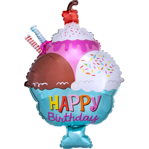 Шар с клапаном (16''/41 см) Мини-фигура, Мороженое с вишенкой, 1 шт., 17176