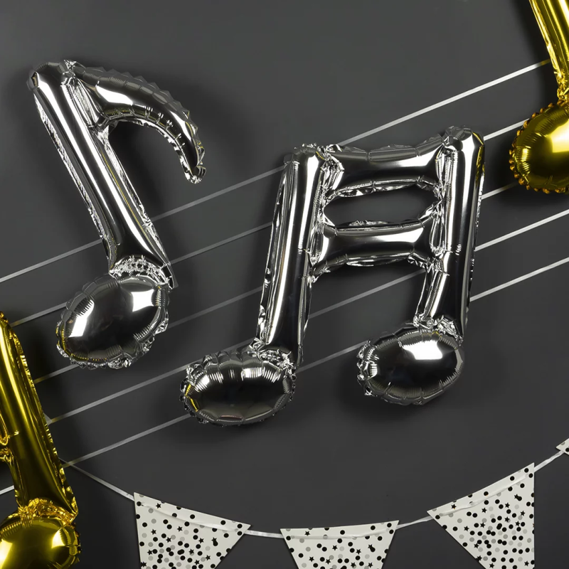 Шар с клапаном (16''/41 см) Мини-фигура, Нота, Серебро, 1 шт., 19807