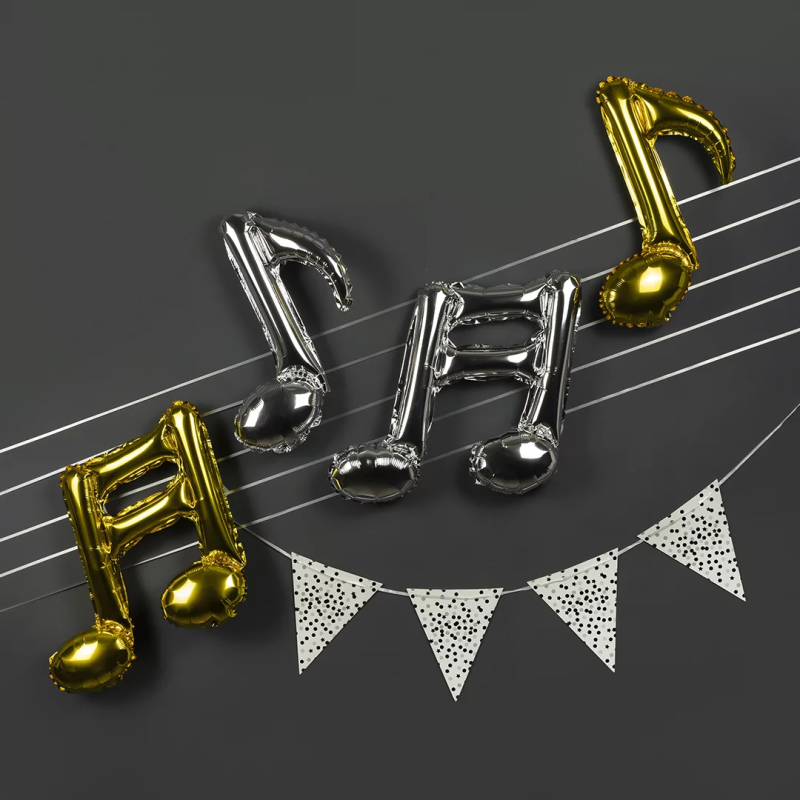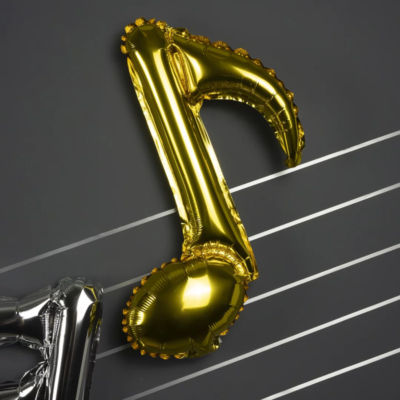 Шар с клапаном (16''/41 см) Мини-фигура, Нота, Золото, 1 шт., 19805