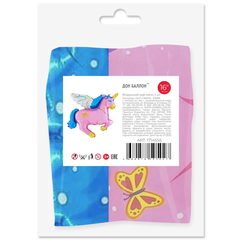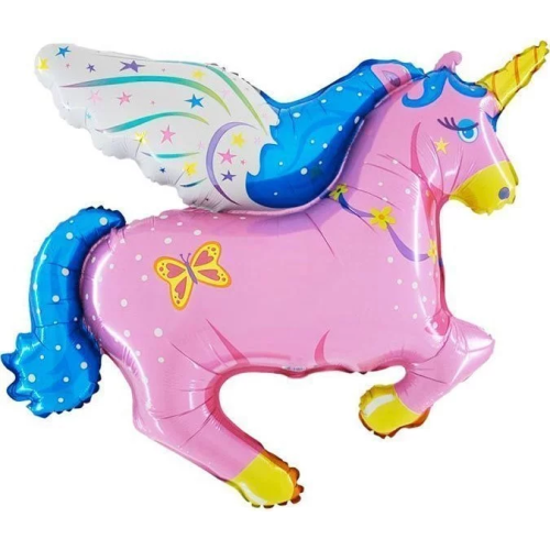 Шар с клапаном (16''/41 см) Мини-фигура, Сказочный единорог, Розовый, 5 шт. в уп. (цв.этик.), 17145S5