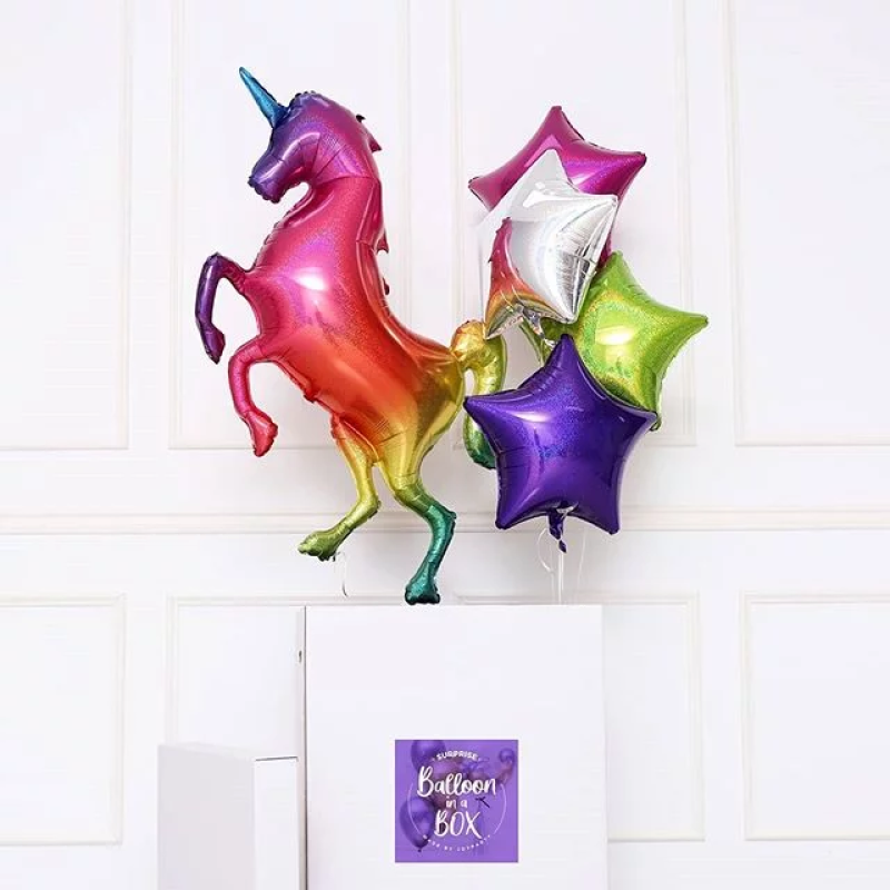 Шар с клапаном (16''/41 см) Мини-фигура, Сверкающий единорог, Радужный, Градиент, 1 шт., 17243