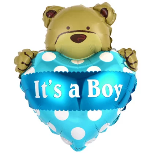 Шар с клапаном (16''/41 см) Мини-сердце, Медвежонок для мальчика, 1 шт., 17120