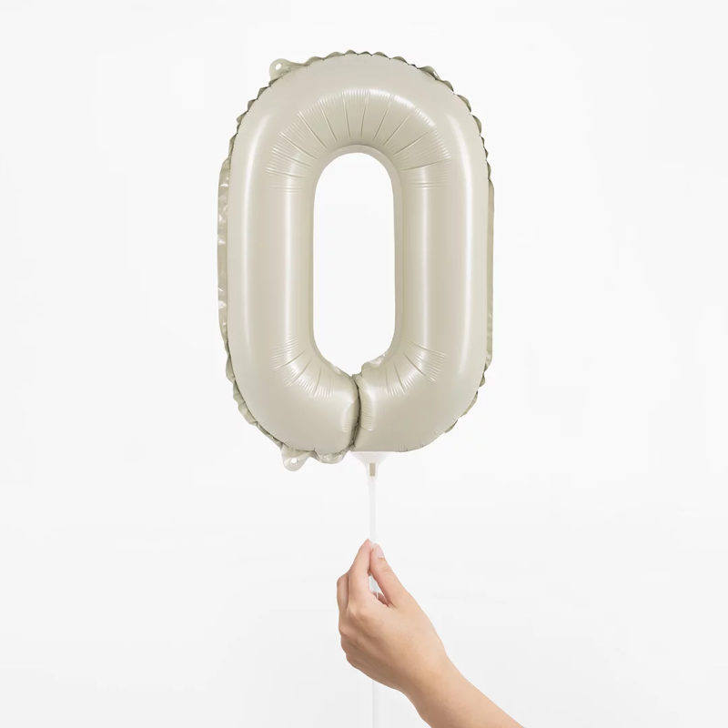 Шар с клапаном (16''/41 см) Мини-цифра, 0, Белый песок, Сатин, 1 шт., 26150