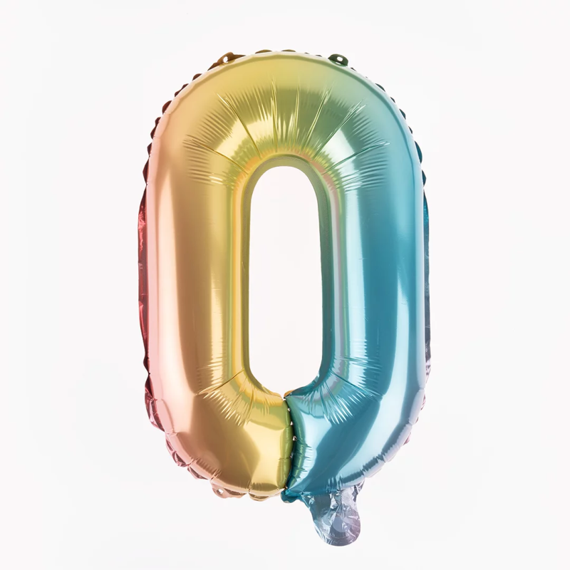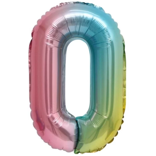 Шар с клапаном (16''/41 см) Мини-цифра, 0, Нежная радуга, Градиент, 1 шт., 180160