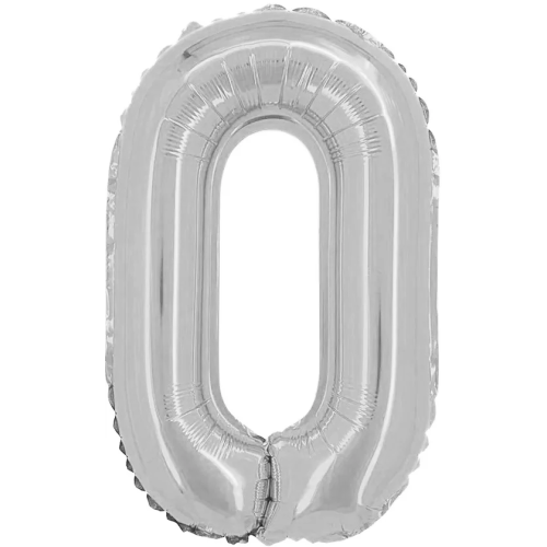 Шар с клапаном (16''/41 см) Мини-цифра, 0, Серебро, Металлик, 1 шт., R3180