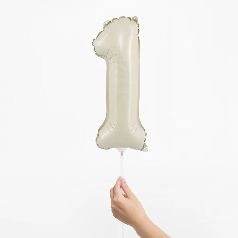 Шар с клапаном (16''/41 см) Мини-цифра, 1, Белый песок, Сатин, 1 шт., 26151