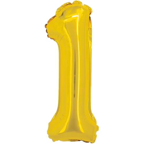Шар с клапаном (16''/41 см) Мини-цифра, 1, Золото, Металлик, 1 шт., R3171