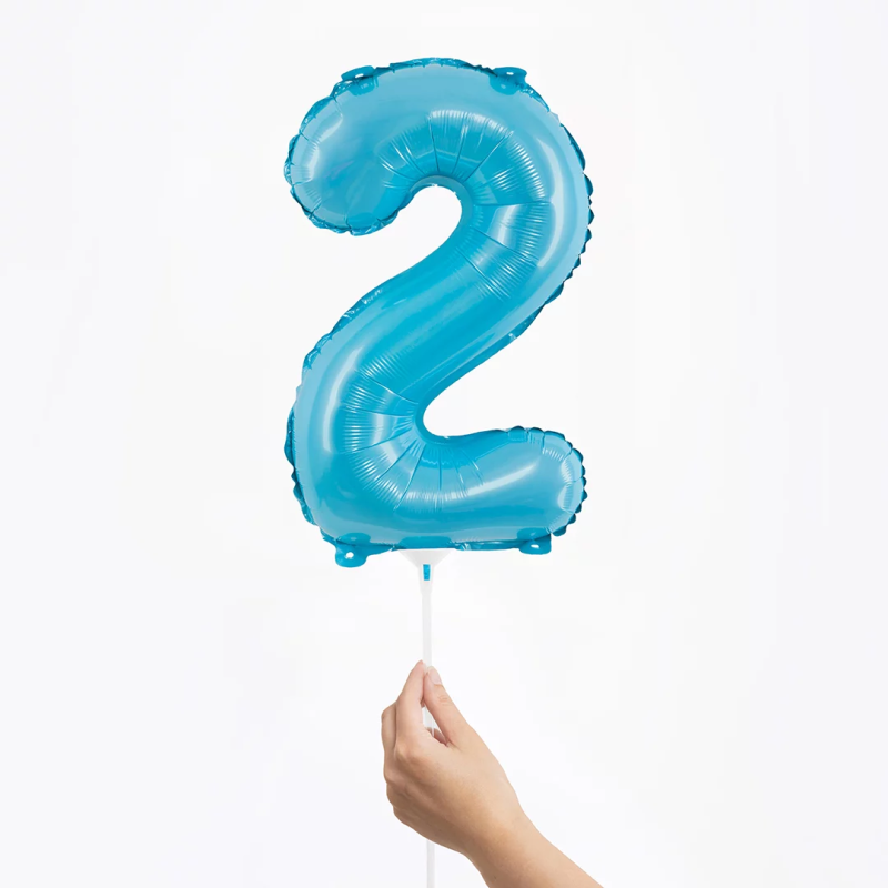 Шар с клапаном (16''/41 см) Мини-цифра, 2, Голубой, Матовый, 1 шт., 23402