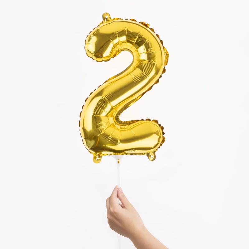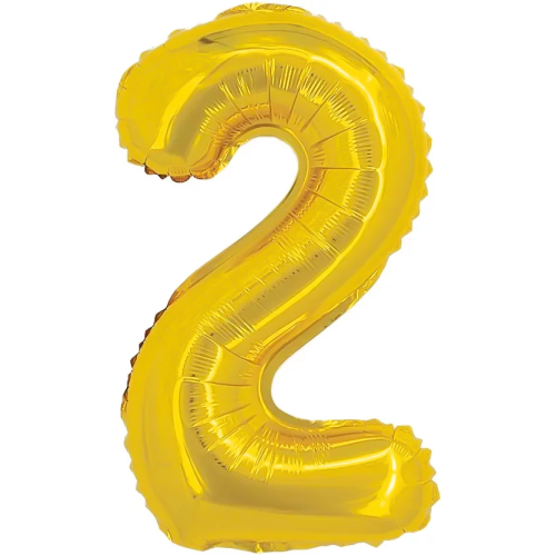 Шар с клапаном (16''/41 см) Мини-цифра, 2, Золото, Металлик, 1 шт., R3172