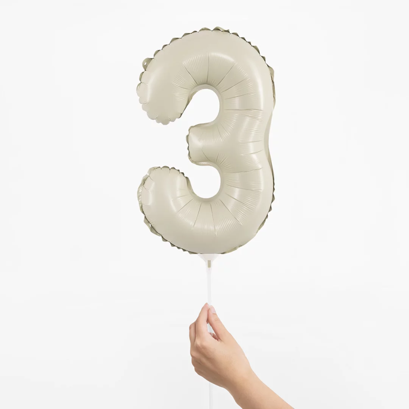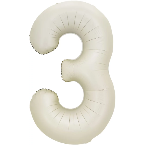 Шар с клапаном (16''/41 см) Мини-цифра, 3, Белый песок, Сатин, 1 шт., 26153