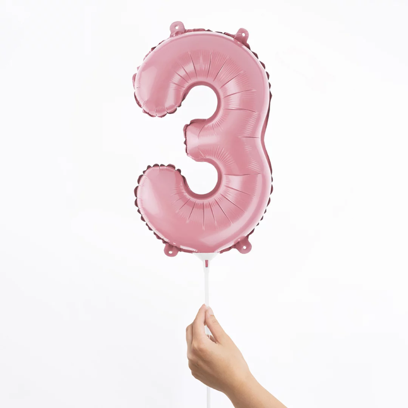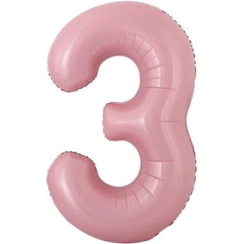Шар с клапаном (16''/41 см) Мини-цифра, 3, Розовый, Матовый, 1 шт., 23413