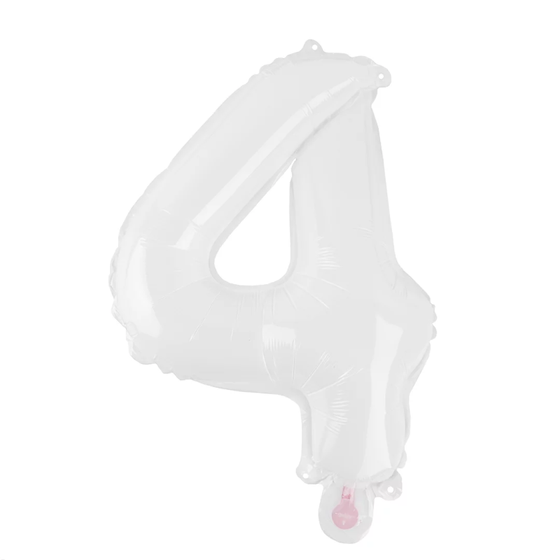 Шар с клапаном (16''/41 см) Мини-цифра, 4, Белый, Матовый, 1 шт., 23894