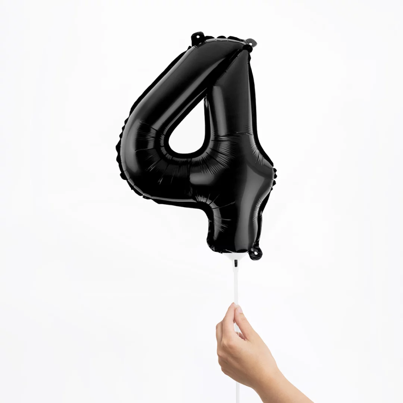 Шар с клапаном (16''/41 см) Мини-цифра, 4, Черный, Матовый, 1 шт., 23884