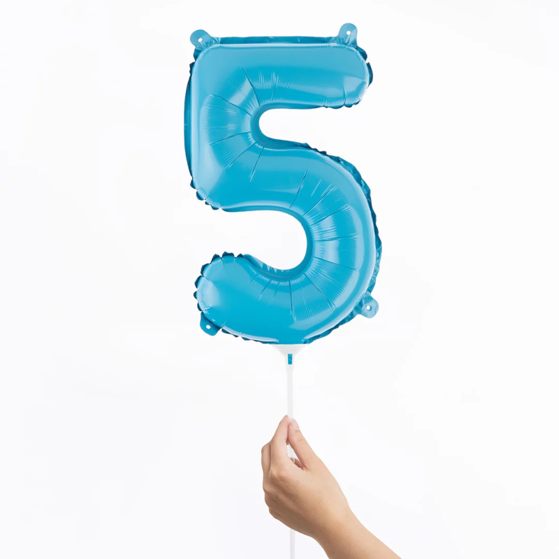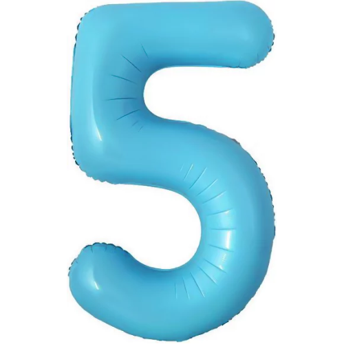 Шар с клапаном (16''/41 см) Мини-цифра, 5, Голубой, Матовый, 1 шт., 23405