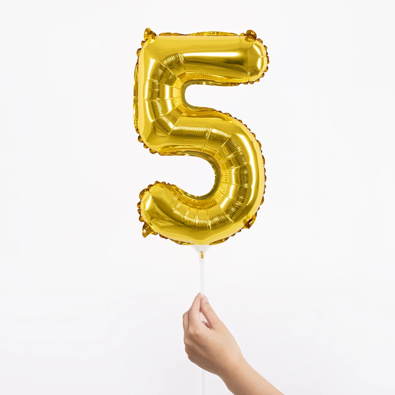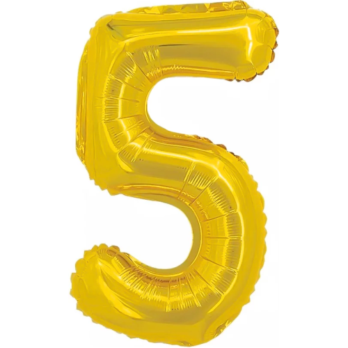Шар с клапаном (16''/41 см) Мини-цифра, 5, Золото, Металлик, 1 шт., R3175