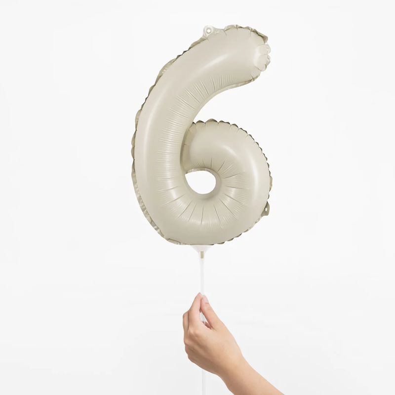 Шар с клапаном (16''/41 см) Мини-цифра, 6, Белый песок, Сатин, 1 шт., 26156