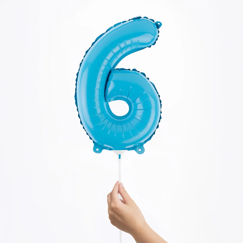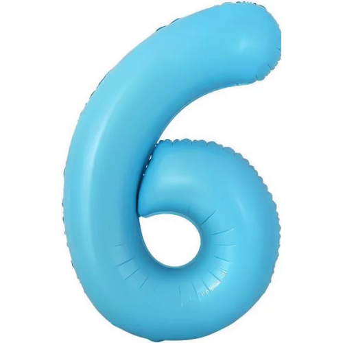 Шар с клапаном (16''/41 см) Мини-цифра, 6, Голубой, Матовый, 1 шт., 23406