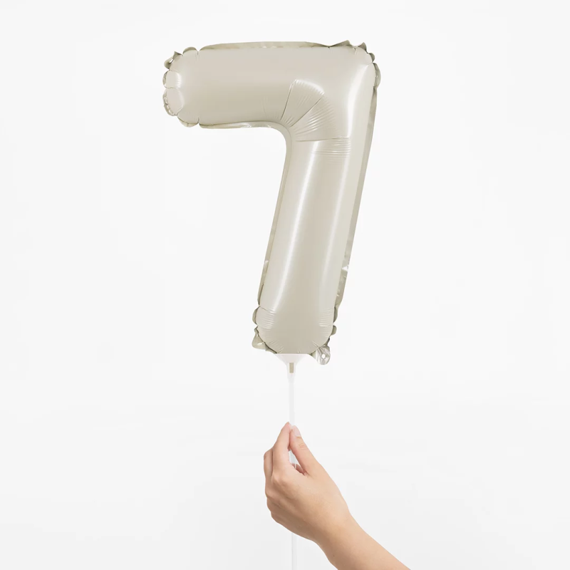 Шар с клапаном (16''/41 см) Мини-цифра, 7, Белый песок, Сатин, 1 шт., 26157