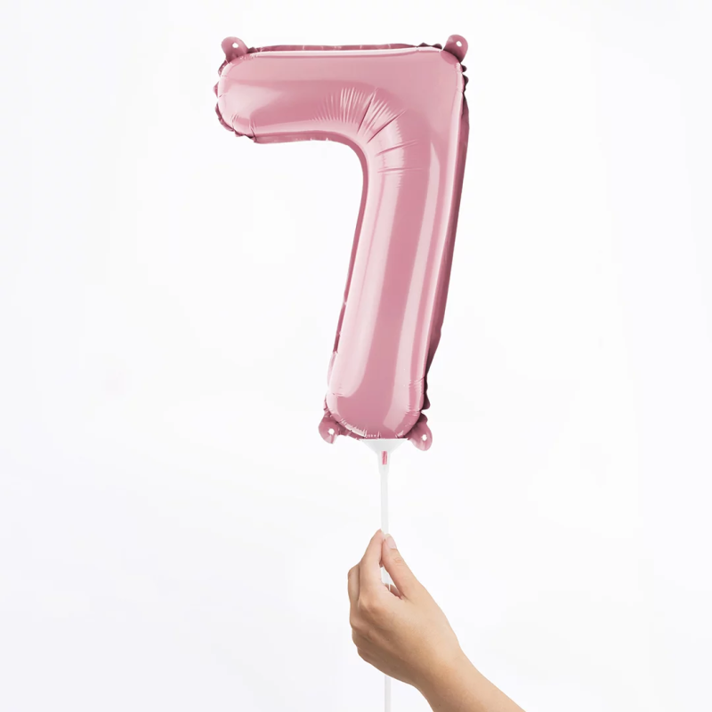 Шар с клапаном (16''/41 см) Мини-цифра, 7, Розовый, Матовый, 1 шт., 23417