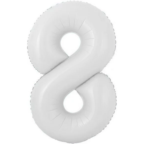 Шар с клапаном (16''/41 см) Мини-цифра, 8, Белый, Матовый, 1 шт., 23898