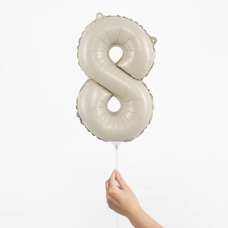 Шар с клапаном (16''/41 см) Мини-цифра, 8, Белый песок, Сатин, 1 шт., 26158