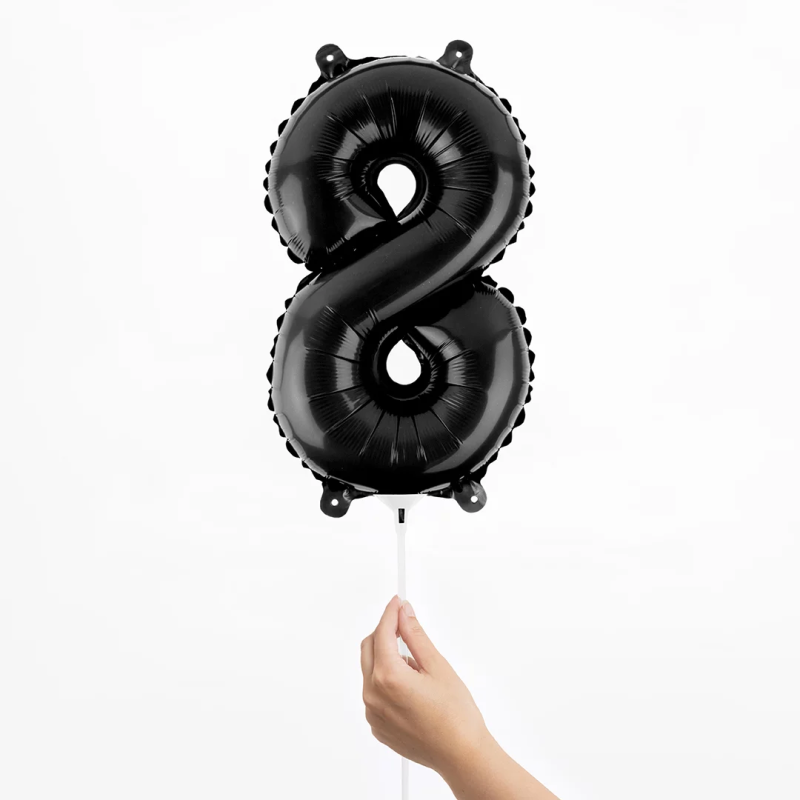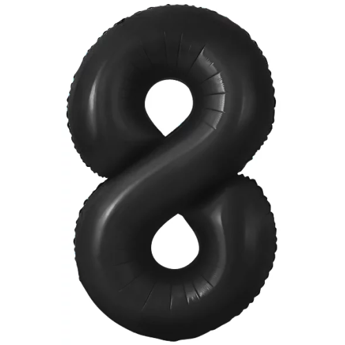 Шар с клапаном (16''/41 см) Мини-цифра, 8, Черный, Матовый, 1 шт., 23888