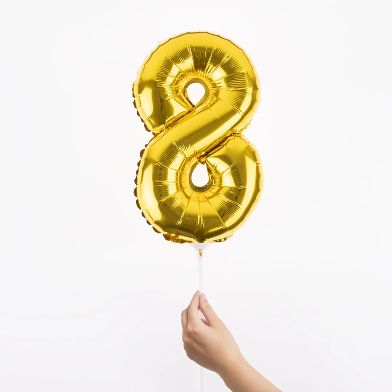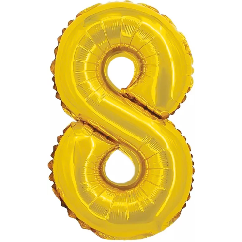 Шар с клапаном (16''/41 см) Мини-цифра, 8, Золото, Металлик, 1 шт., R3178