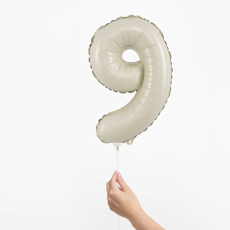 Шар с клапаном (16''/41 см) Мини-цифра, 9, Белый песок, Сатин, 1 шт., 26159