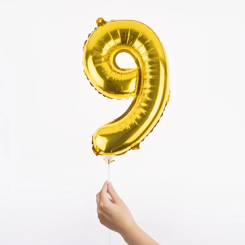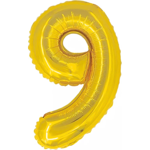 Шар с клапаном (16''/41 см) Мини-цифра, 9, Золото, Металлик, 1 шт., R3179