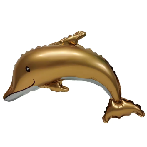 Шар с клапаном (17''/43 см) Мини-фигура, Дельфин, Золото, Сатин, 1 шт., 26078