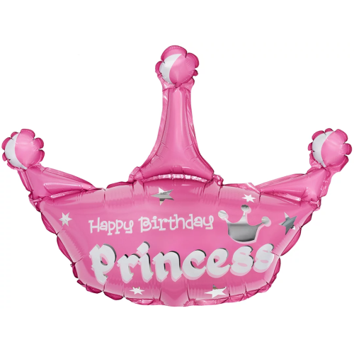 Шар с клапаном (17''/43 см) Мини-фигура, Корона, С Днем Рождения, Принцесса, Розовый, 1 шт., 17225