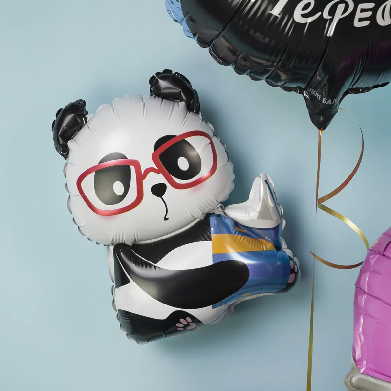 Шар с клапаном (17''/43 см) Мини-фигура, Маленькая панда с книжкой, 1 шт., 17280