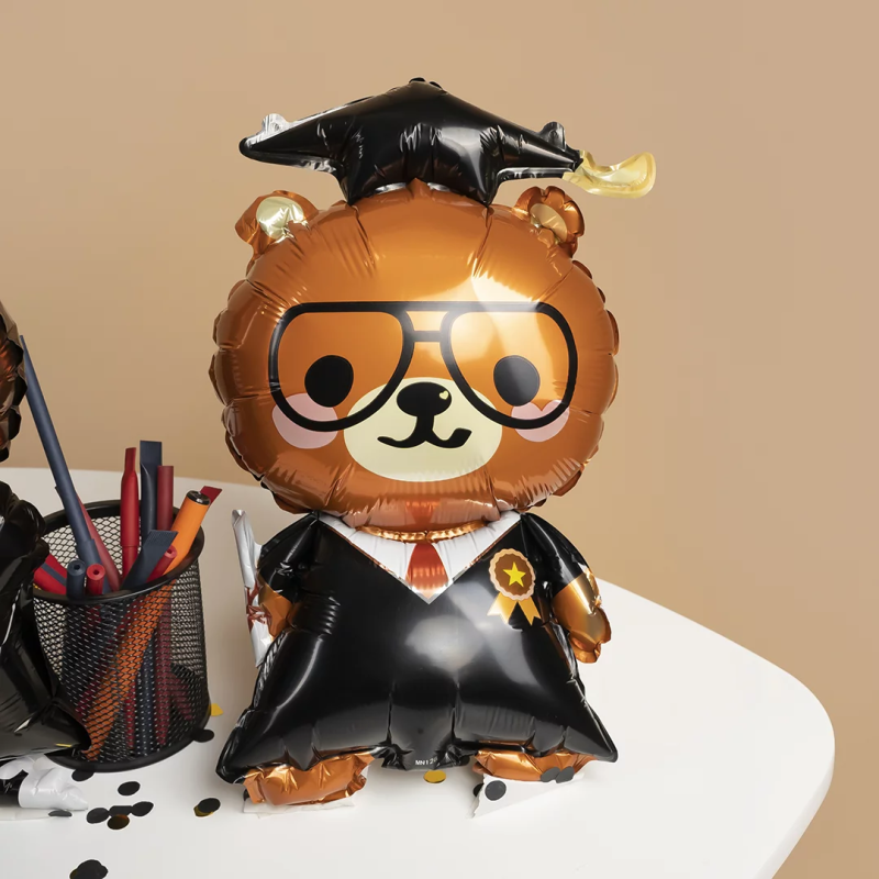 Шар с клапаном (17''/43 см) Мини-фигура, Медвежонок Выпускник, 1 шт., 24582