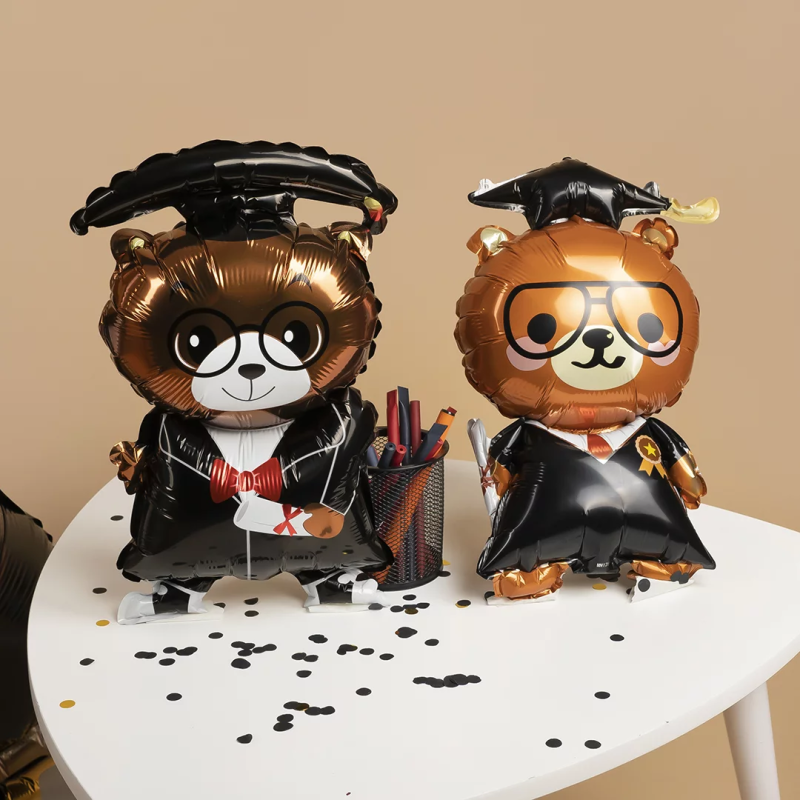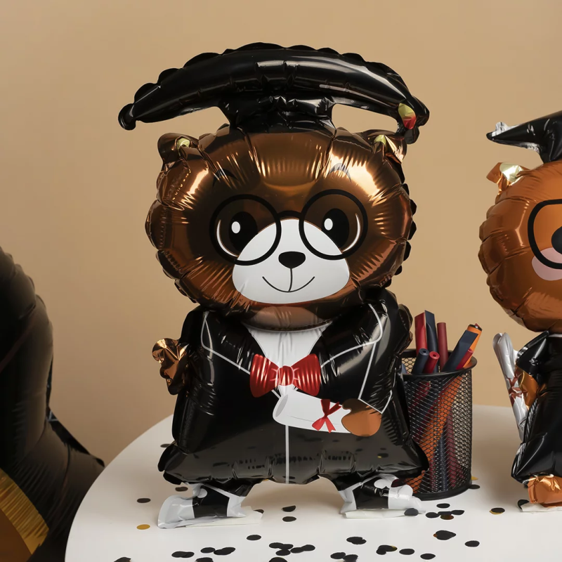 Шар с клапаном (17''/43 см) Мини-фигура, Мишка Выпускник, 1 шт., 24583
