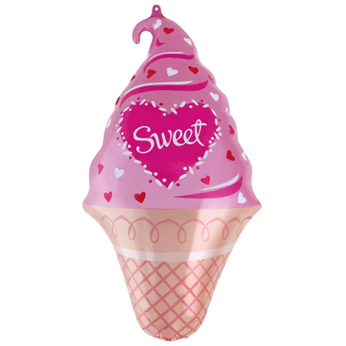 Шар с клапаном (17''/43 см) Мини-фигура, Мороженое, Сладкие сердечки, Розовый, 1 шт., 17047
