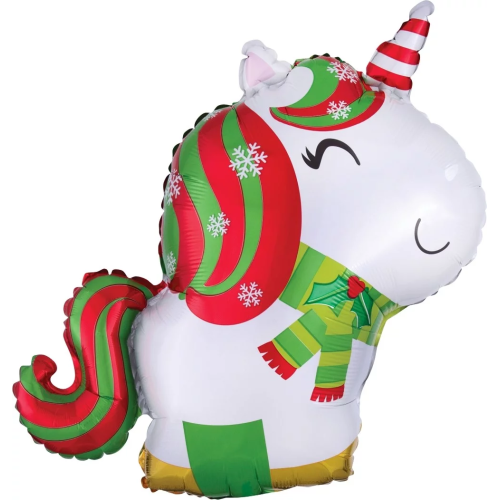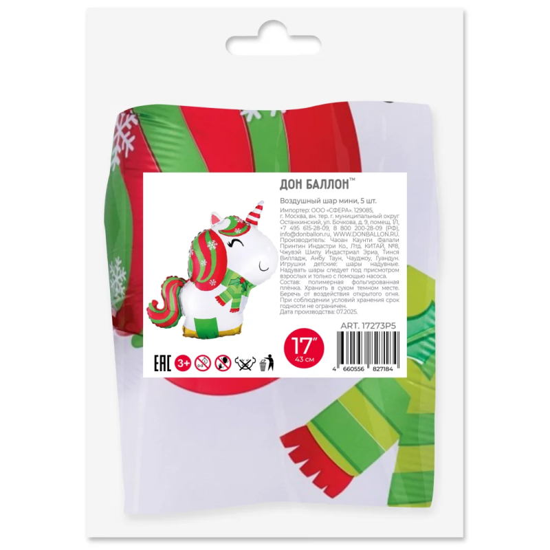 Шар с клапаном (17''/43 см) Мини-фигура, Новогодний единорог, 5 шт. в уп., 17273P5