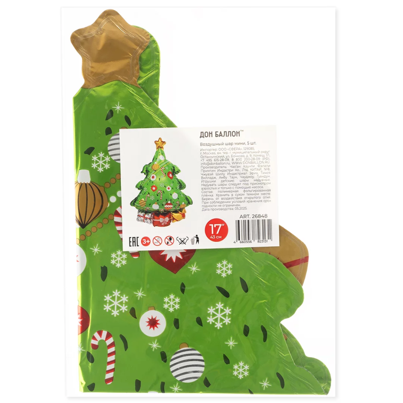 Шар с клапаном (17''/43 см) Мини-фигура, Новогодняя елочка, 5 шт. в уп., 26848