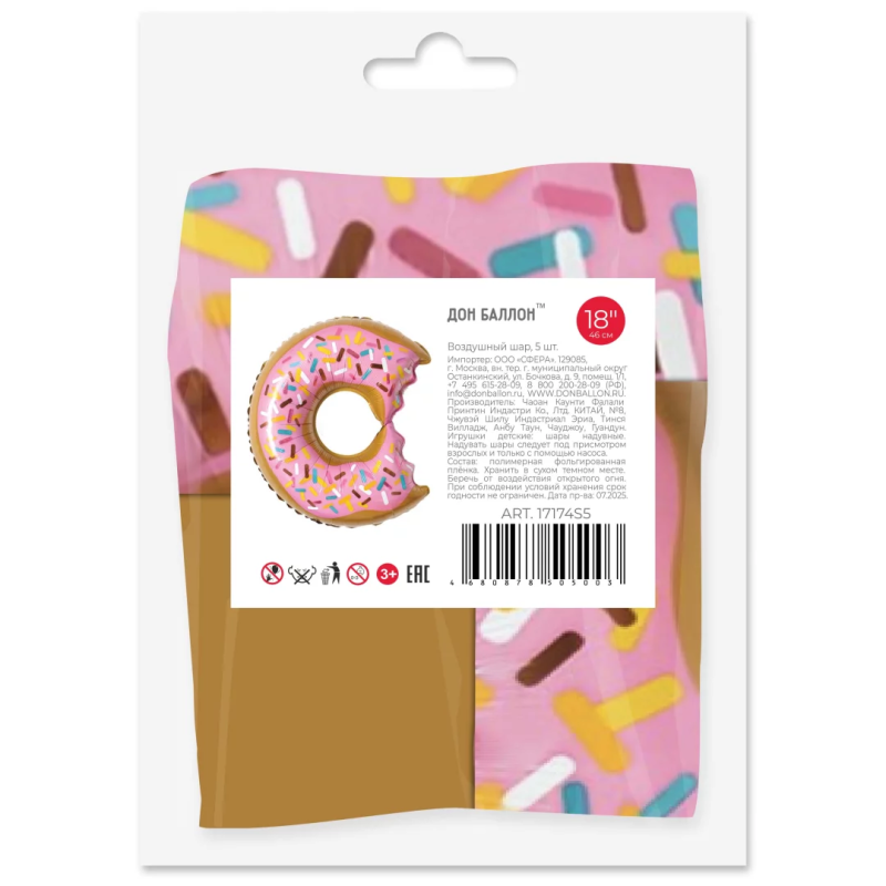 Шар с клапаном (17''/43 см) Мини-фигура, Пончик (надкусанный), 5 шт. в уп. (цв.этик.), 17174S5