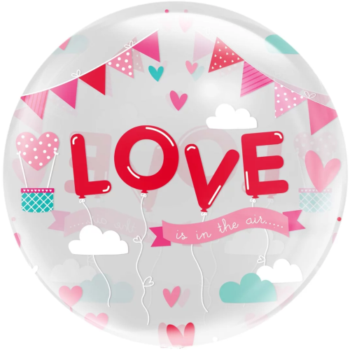 Шар с клапаном (18''/46 см) Сфера, Deco Bubble, Любовь, Прозрачный, Кристалл, 1 шт. в уп., 518007