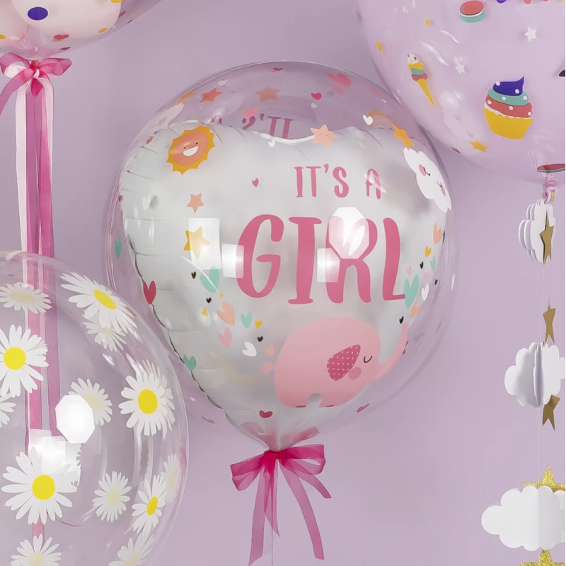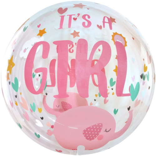 Шар с клапаном (18''/46 см) Сфера, Это Девочка, Прозрачный, Кристалл, 1 шт. в уп., 518008