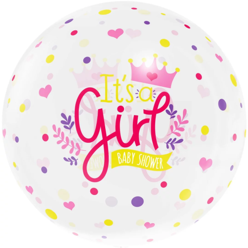 Шар с клапаном (18''/46 см) Сфера, Это Девочка, Прозрачный, Кристалл, 1 шт. в уп., 518017