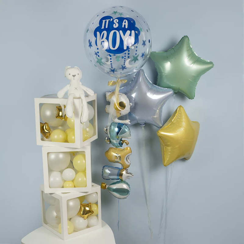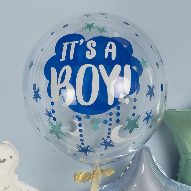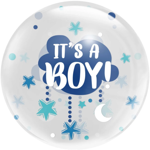 Шар с клапаном (18''/46 см) Сфера, Это Мальчик, Прозрачный, Кристалл, 1 шт. в уп., 518009