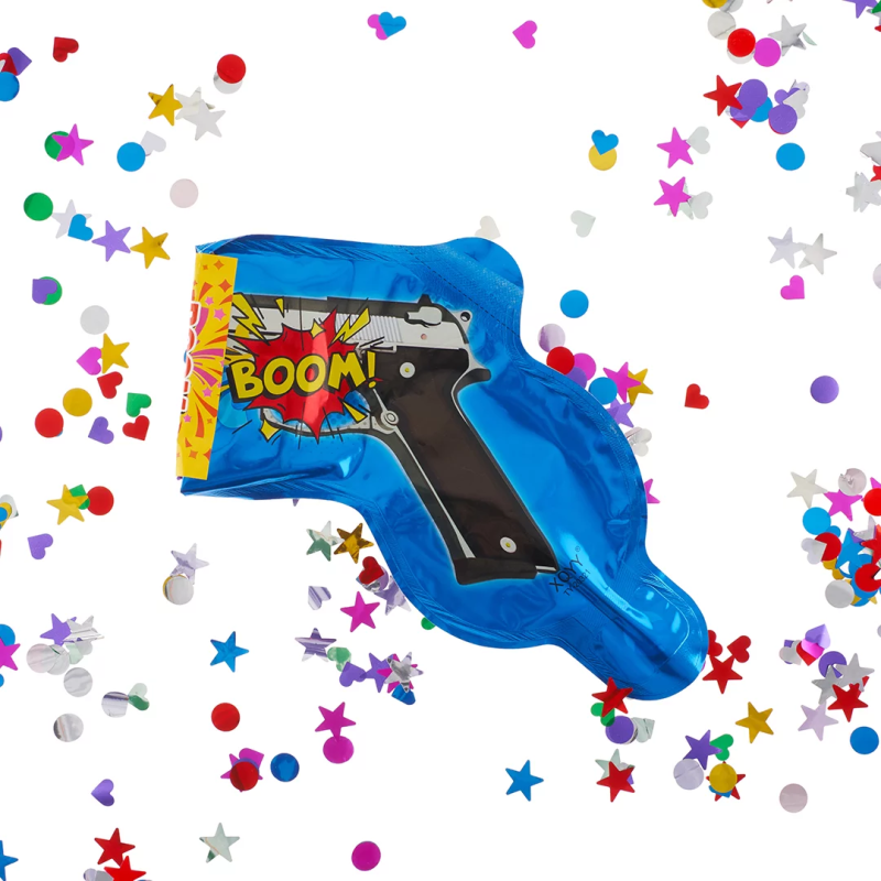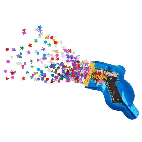 Шар с клапаном (8''/20 см) Мини-фигура, Пистолет - хлопушка с конфетти, Синий, 1 шт., 23251