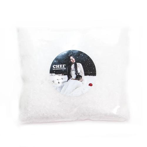 Полимерный снег с завораживающим ледяным блеском, рассыпчатостью и способностью переливаться в лучах света. Используется для имитации снега и снежного покрова, сугробов. Широко используется для декорирования различных поверхностей, оформления праздничных мероприятий, показов, выставочных стендов или витрин.
