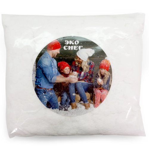 Вискозный снег ничем не отличается по внешнему виду от настоящего. Произведен из экологического и безвредного материала. Снег великолепно держит форму и лепится в снежки, не портит поверхности, с которыми соприкасается. Используется для имитации снега и снежного покрова, сугробов. Широко используется для декорирования различных поверхностей, оформления праздничных мероприятий, показов, выставочных стендов или витрин.