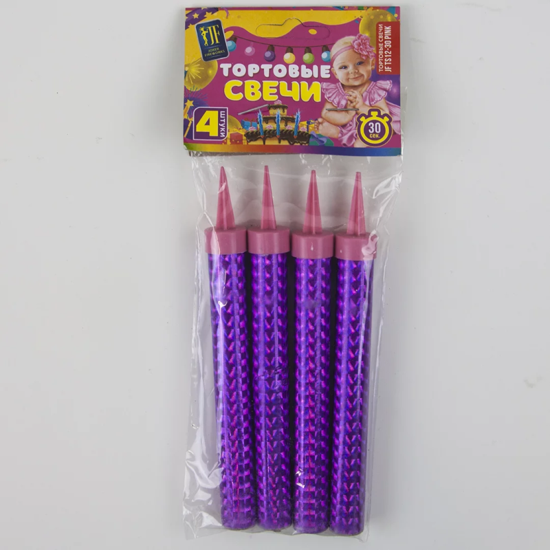 Свеча Фонтан для торта, 30 сек, Розовое пламя, 12 см, 4 шт., JFTS12-30PINK