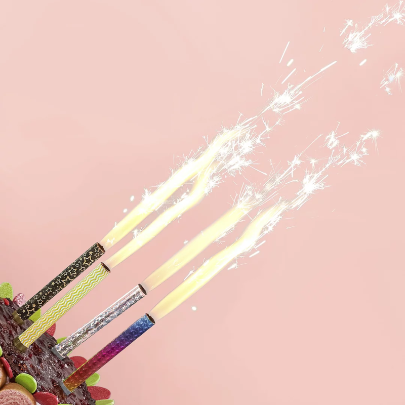 Свеча Фонтан для торта, 30 сек, Зигзаги, Сияющая иллюзия, Голография, 10 см, 4 шт., ВВ003/3