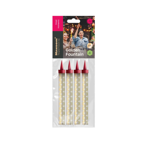 Свеча Фонтан для торта, 40 сек, Золото, 12,5 см, 4 шт., MF001