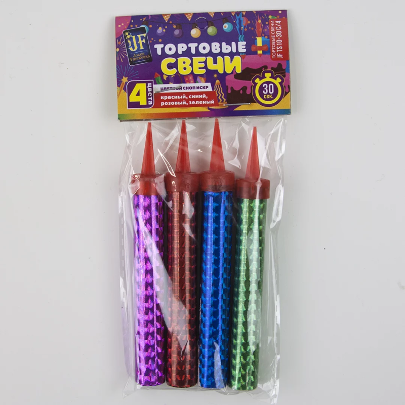 Свеча Фонтан для торта, Цветное пламя, 30 сек, 10 см, 4 шт., JFTS10-30C/4